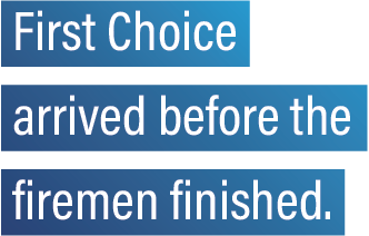 First Choice arrived before the firemen finished putting all of their equipment and hoses away to evaluate the situation.